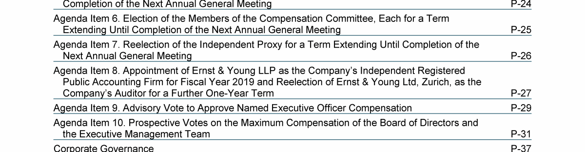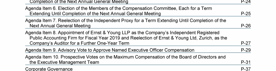 Agenda Item 8. Appointment of Ernst & Young LLP as the Company's Independent Registered Public Accounting Firm for Fiscal Year 2019 and Reelection of Ernst & Young Ltd, Zurich, as the Company's Auditor for a Further One-Year Term