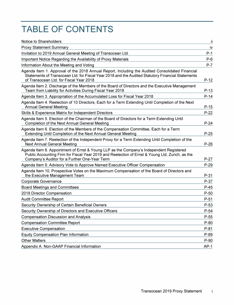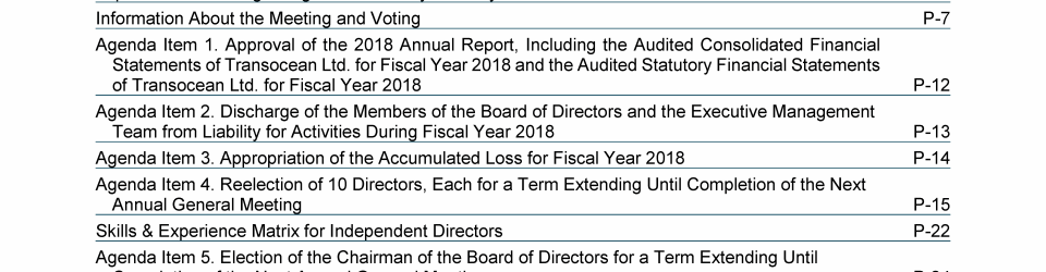 Invitation to 2019 Annual General Meeting of Transocean Ltd.