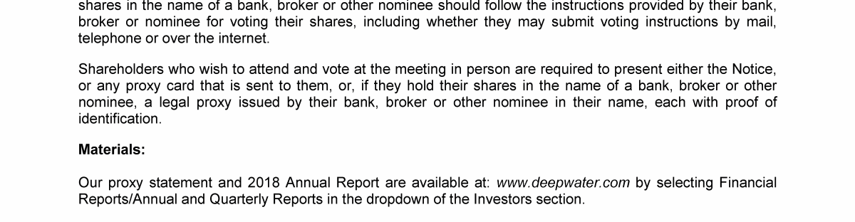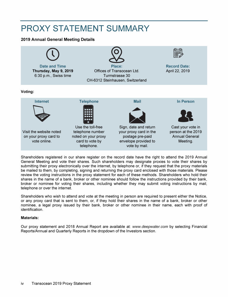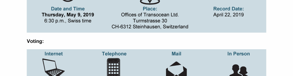 Invitation to 2019 Annual General Meeting of Transocean Ltd.