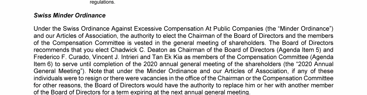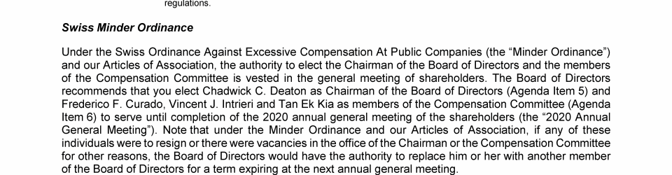 Agenda Item 8. Appointment of Ernst & Young LLP as the Company's Independent Registered Public Accounting Firm for Fiscal Year 2019 and Reelection of Ernst & Young Ltd, Zurich, as the Company's Auditor for a Further One-Year Term