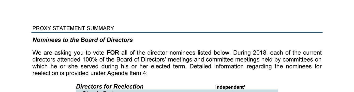 Agenda Item 1. Approval of the 2018 Annual Report, Including the Audited Consolidated Financial Statements of Transocean Ltd. for Fiscal Year 2018 and the Audited Statutory Financial Statements of Transocean Ltd. for Fiscal Year 2018