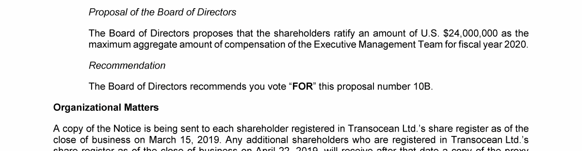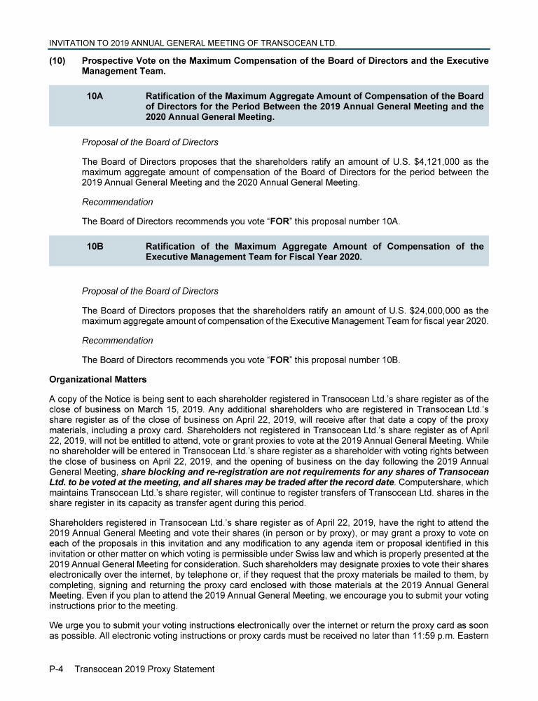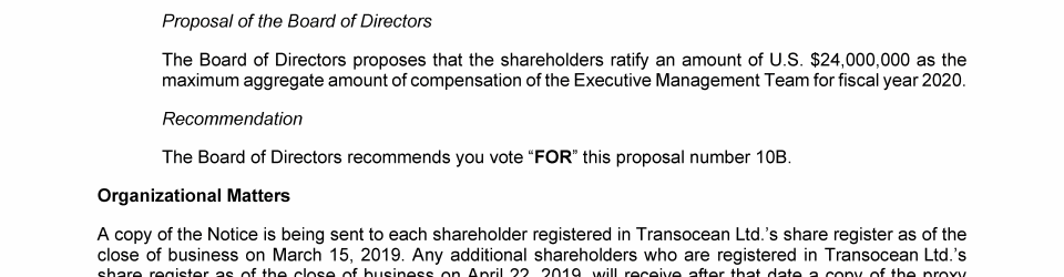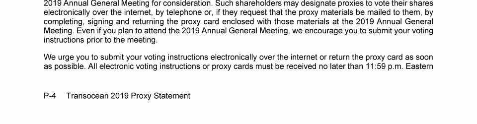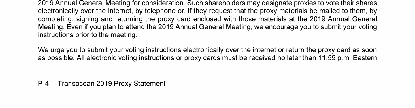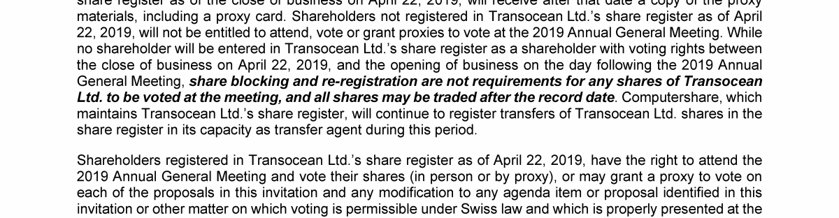 Invitation to 2019 Annual General Meeting of Transocean Ltd.