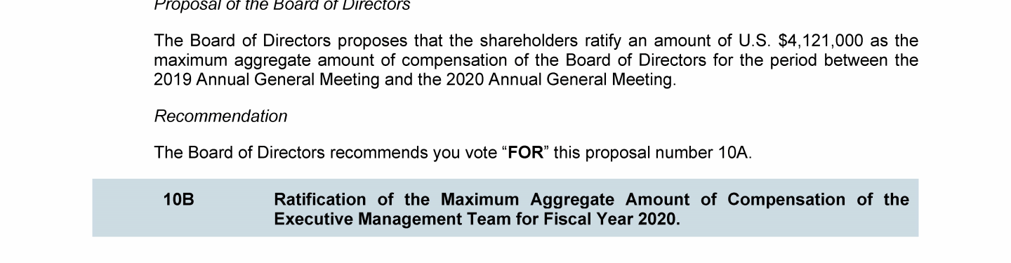 Agenda Item 10. Prospective Votes on the Maximum Compensation of the Board of Directors and the Executive Management Team