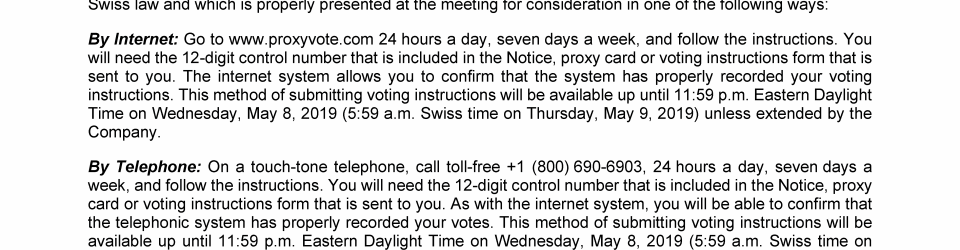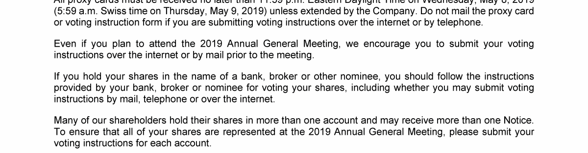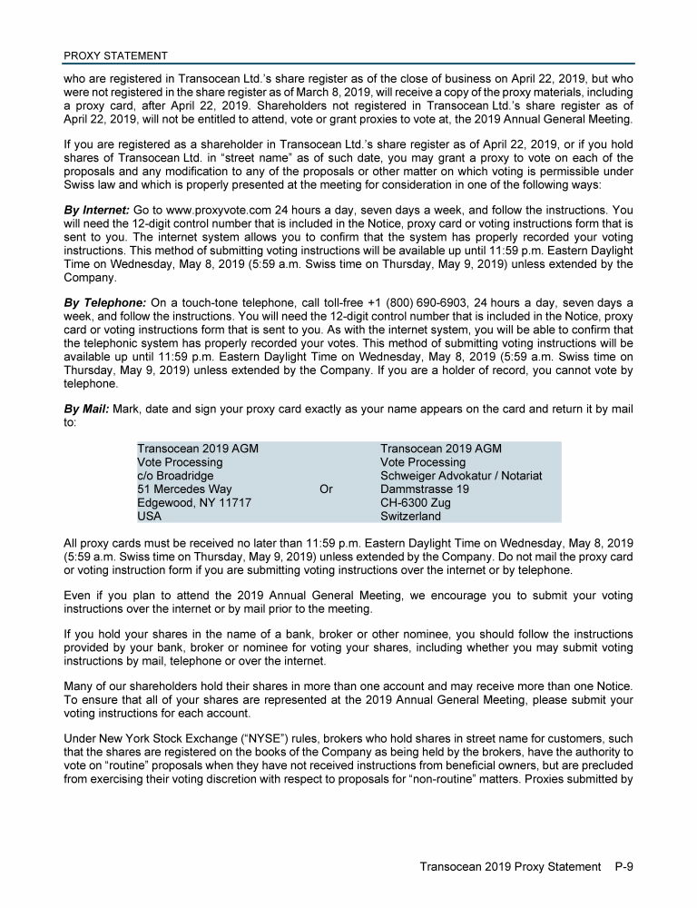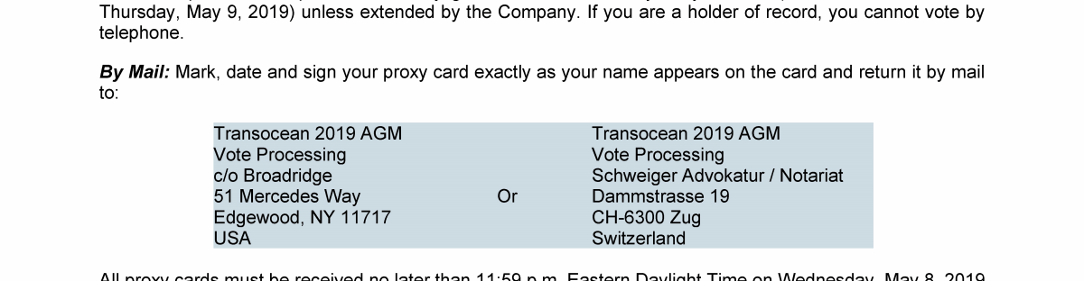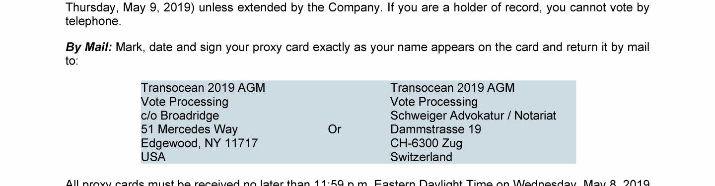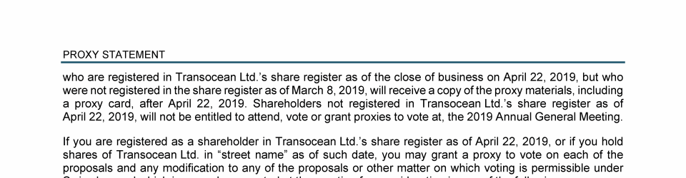 Invitation to 2019 Annual General Meeting of Transocean Ltd.