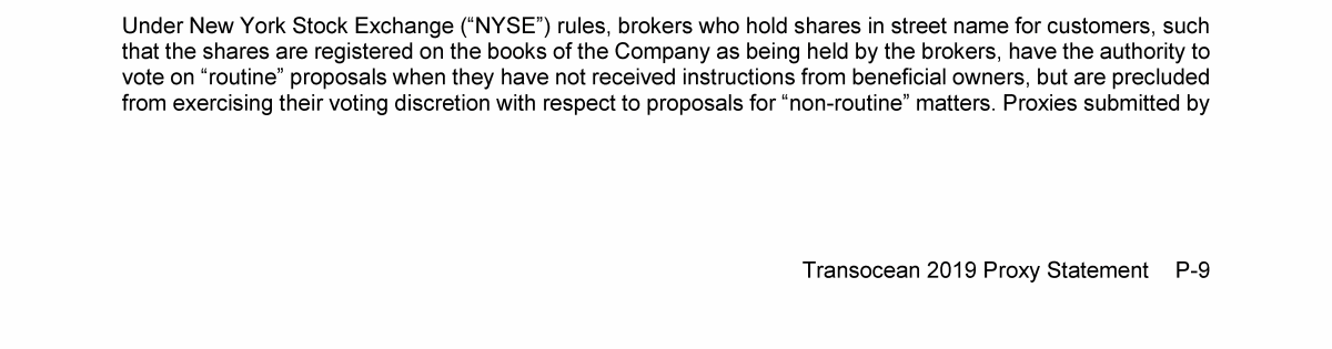 Agenda Item 1. Approval of the 2018 Annual Report, Including the Audited Consolidated Financial Statements of Transocean Ltd. for Fiscal Year 2018 and the Audited Statutory Financial Statements of Transocean Ltd. for Fiscal Year 2018