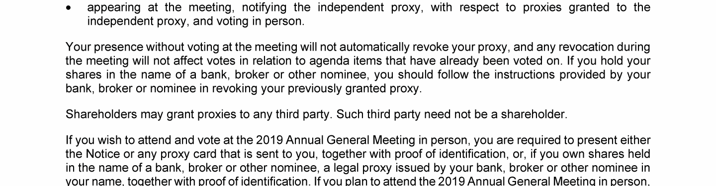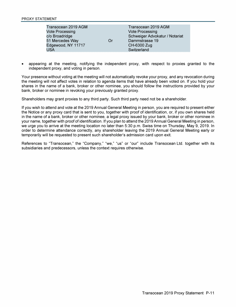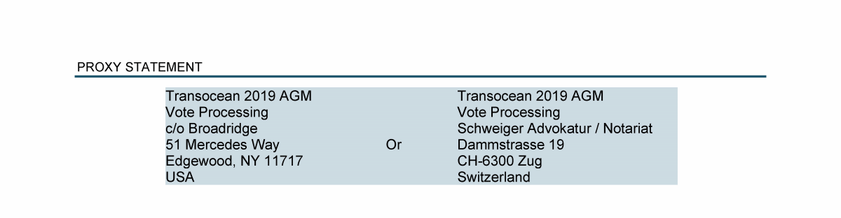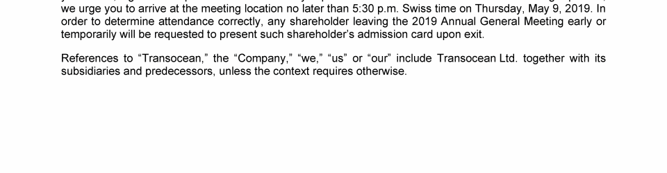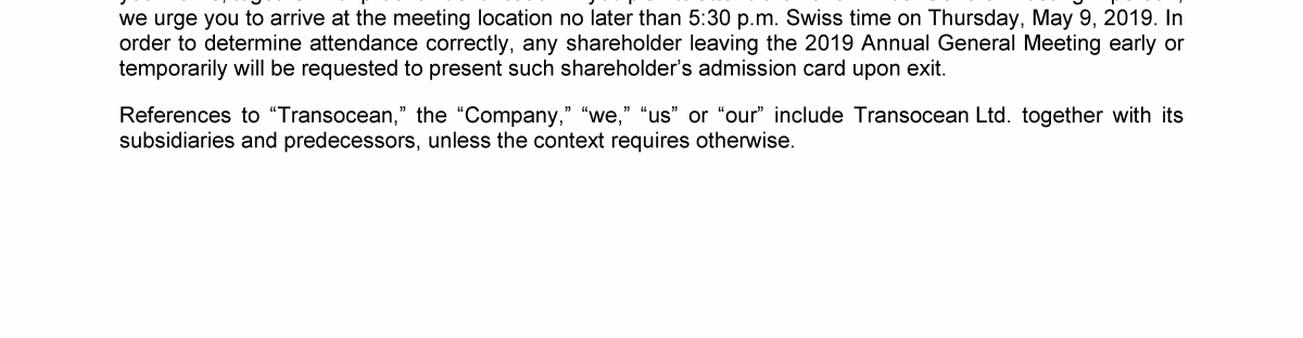 Invitation to 2019 Annual General Meeting of Transocean Ltd.