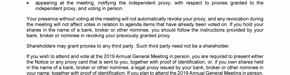 2019 Proxy Statement and 2018 Annual Report