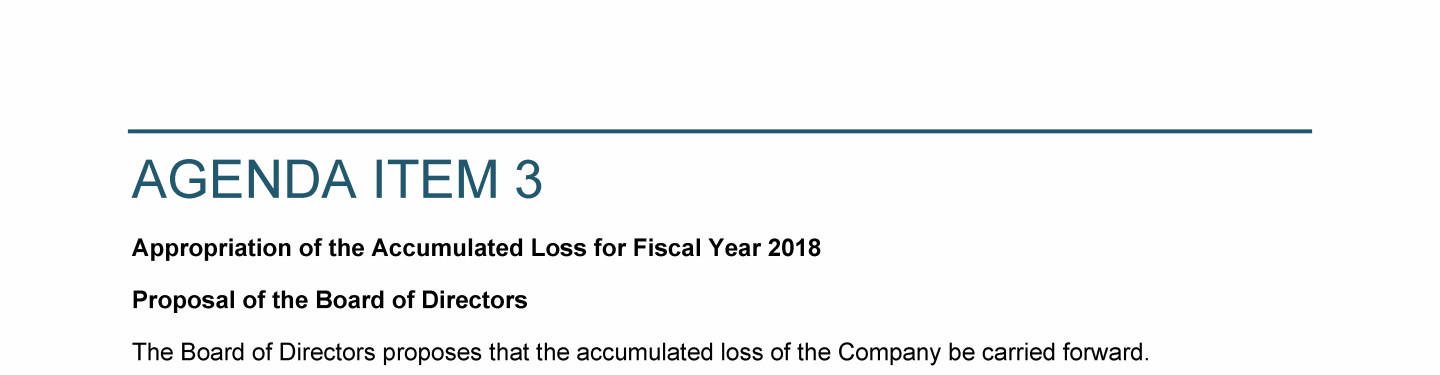 Agenda Item 3. Appropriation of the Accumulated Loss for Fiscal Year 2018
