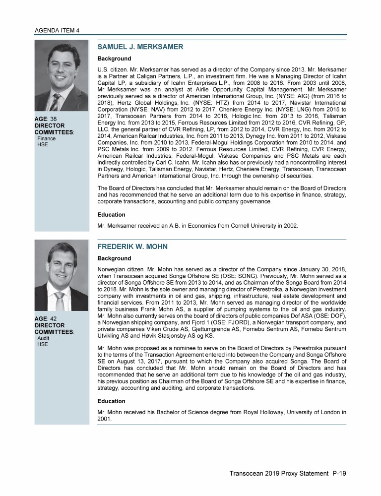 Invitation to 2019 Annual General Meeting of Transocean Ltd.