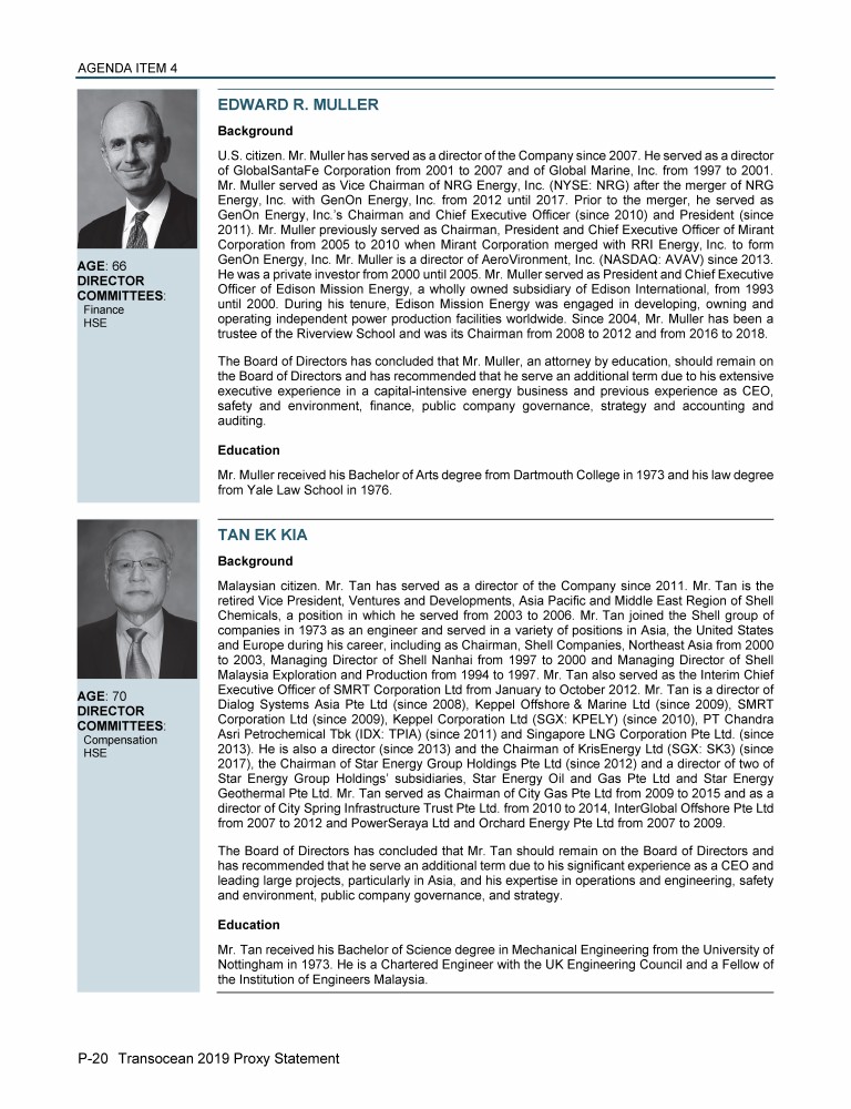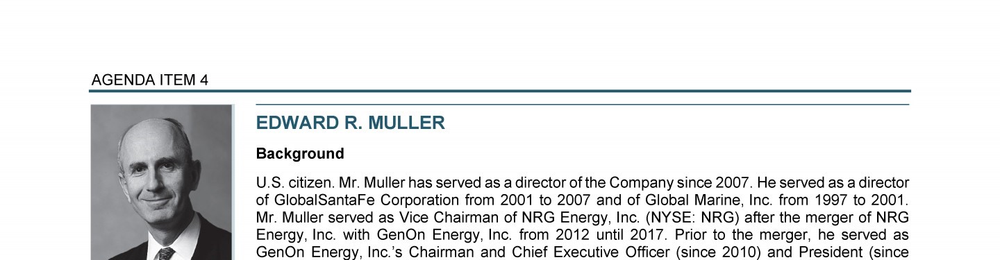 Agenda Item 1. Approval of the 2018 Annual Report, Including the Audited Consolidated Financial Statements of Transocean Ltd. for Fiscal Year 2018 and the Audited Statutory Financial Statements of Transocean Ltd. for Fiscal Year 2018