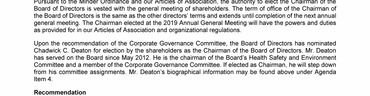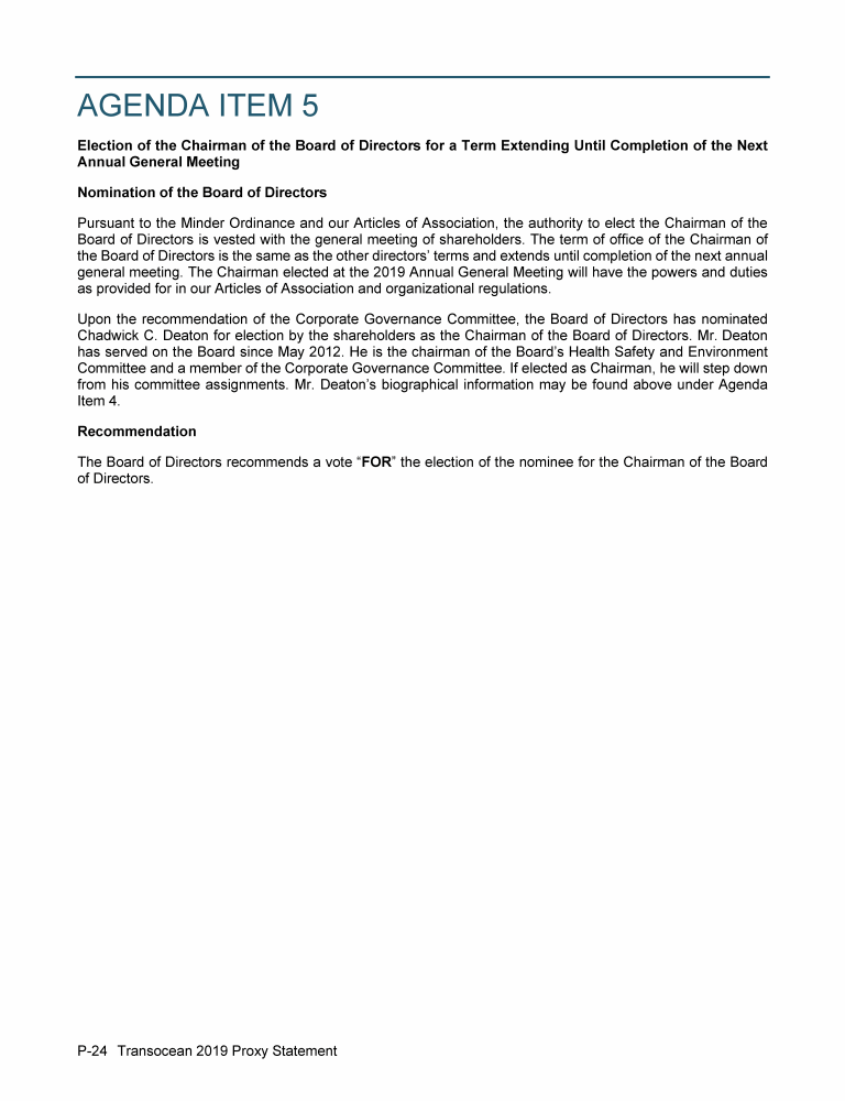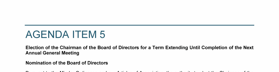 Agenda Item 5. Election of the Chairman of the Board of Directors for a Term Extending Until Completion of the Next Annual General Meeting