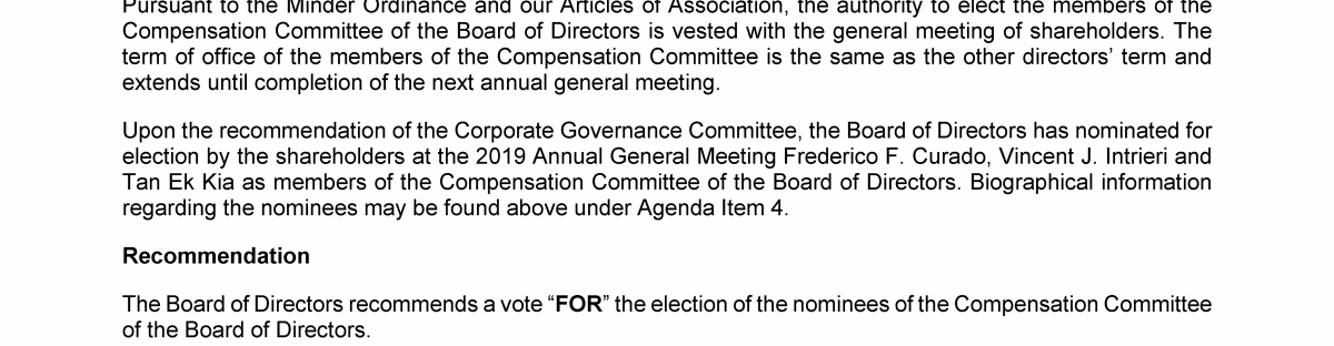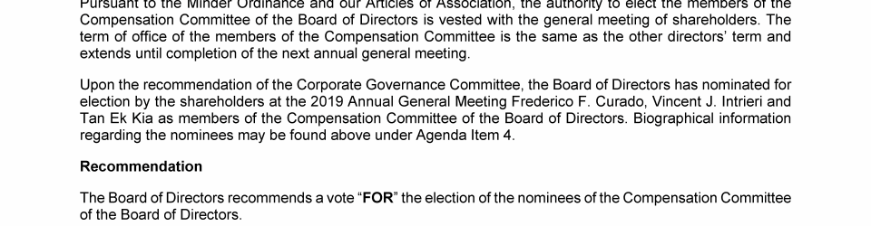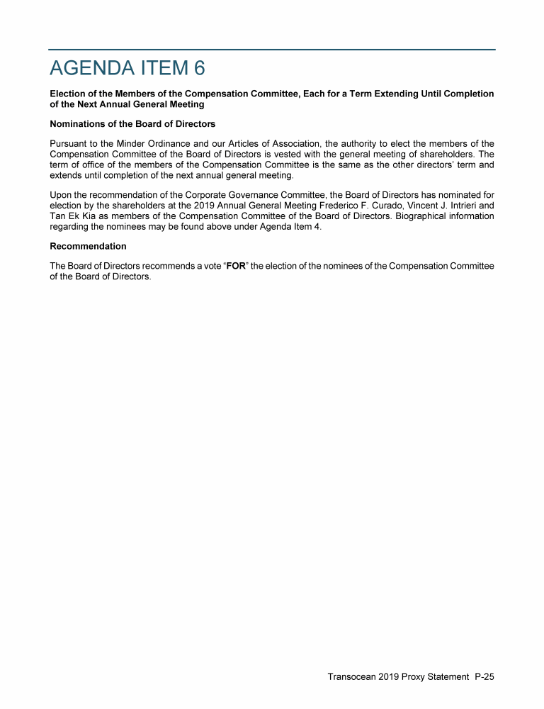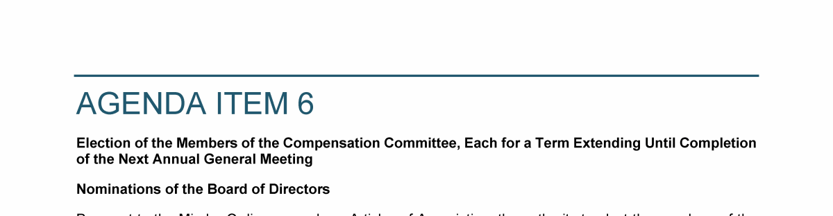 Agenda Item 6. Election of the Members of the Compensation Committee, Each for a Term Extending Until Completion of the Next Annual General Meeting