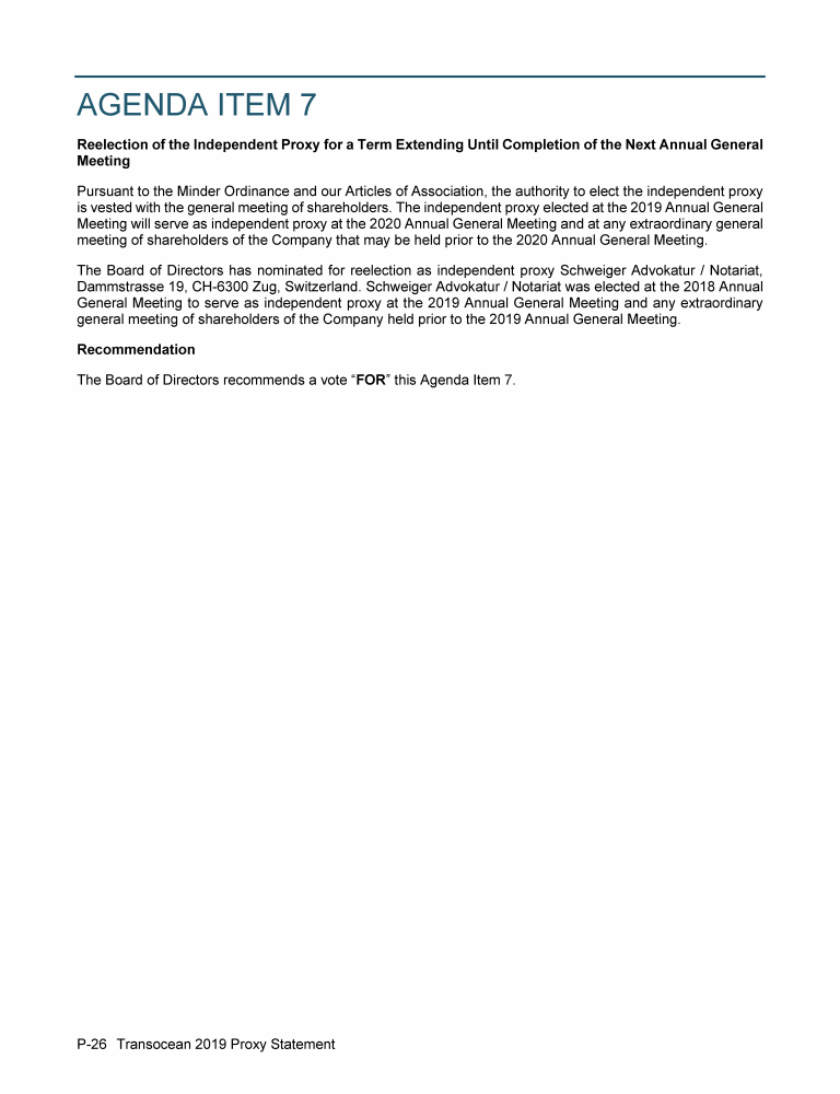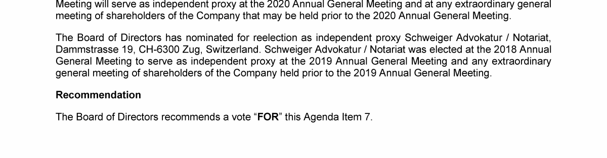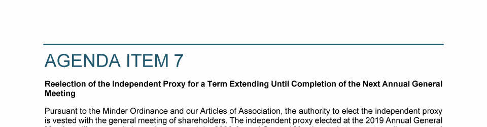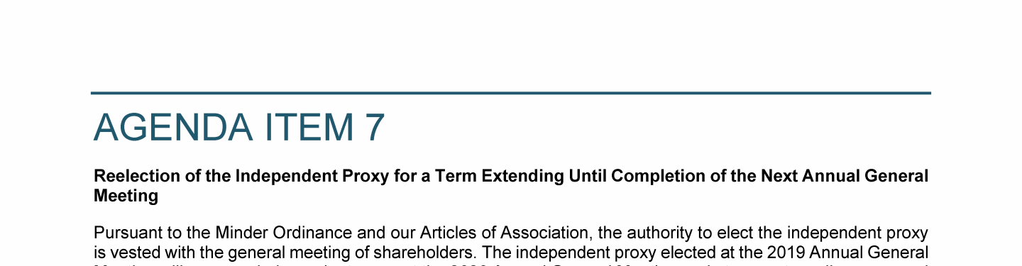 Agenda Item 7. Reelection of the Independent Proxy for a Term Extending Until Completion of the Next Annual General Meeting