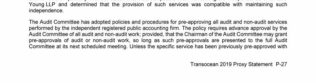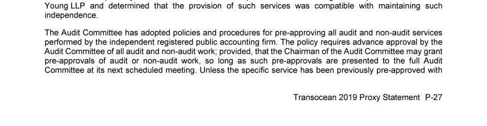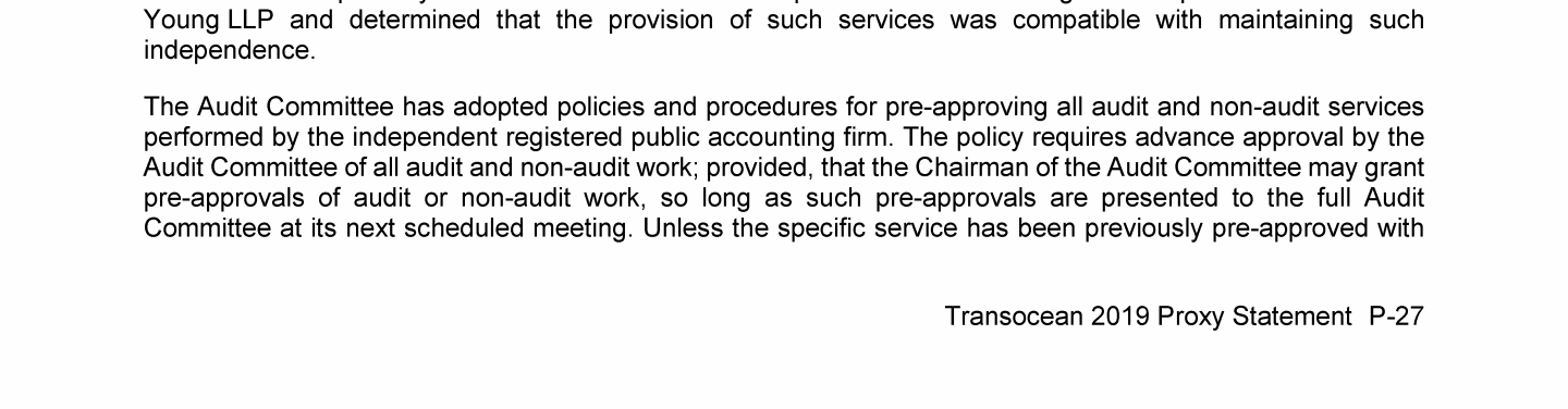 Agenda Item 1. Approval of the 2018 Annual Report, Including the Audited Consolidated Financial Statements of Transocean Ltd. for Fiscal Year 2018 and the Audited Statutory Financial Statements of Transocean Ltd. for Fiscal Year 2018