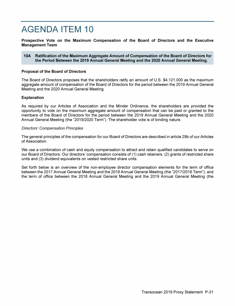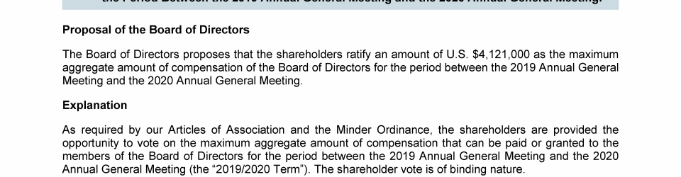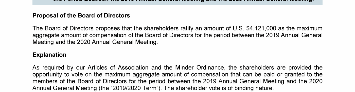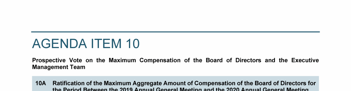 Agenda Item 10. Prospective Votes on the Maximum Compensation of the Board of Directors and the Executive Management Team