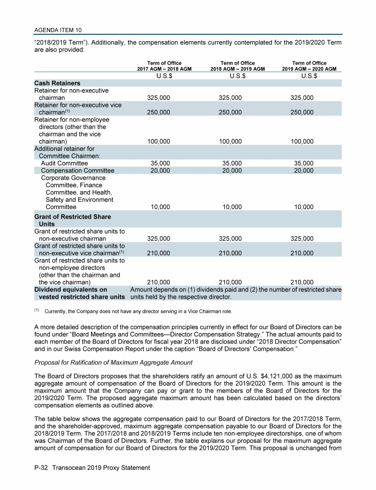 Agenda Item 10. Prospective Votes on the Maximum Compensation of the Board of Directors and the Executive Management Team