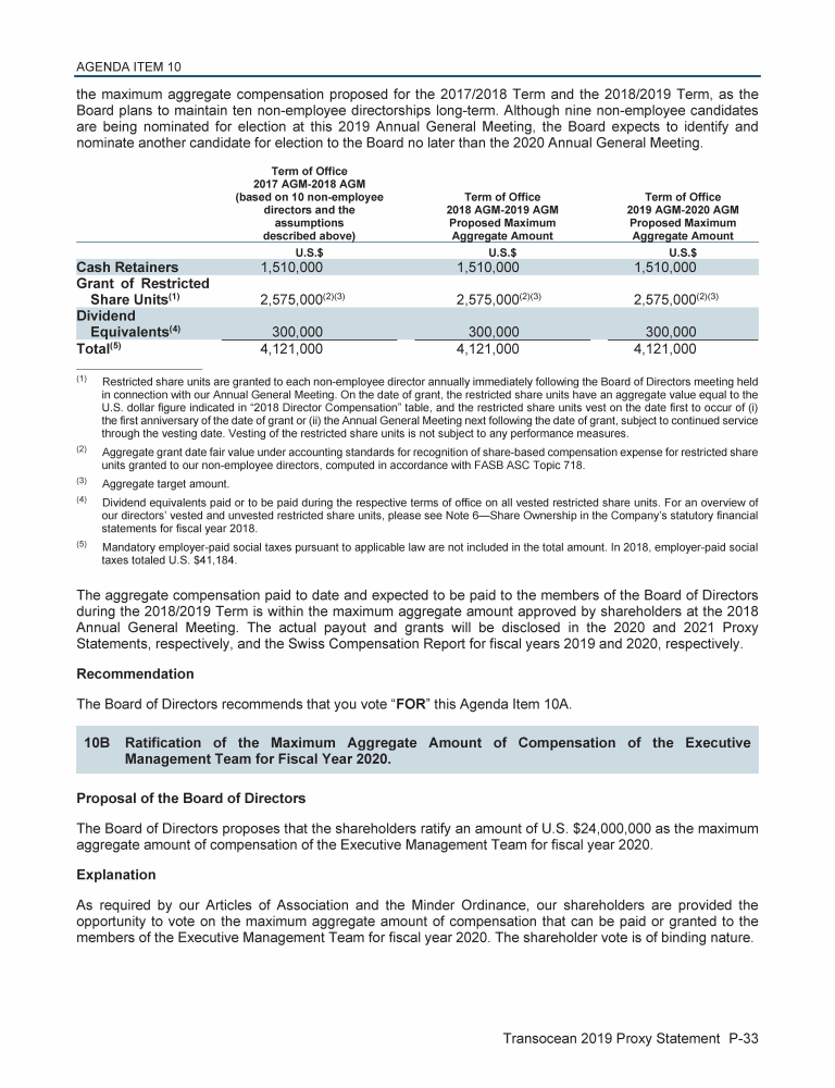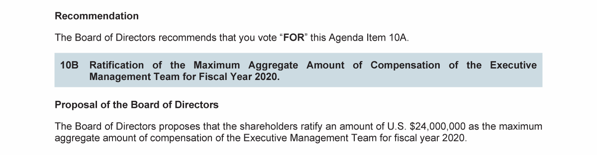 Agenda Item 10. Prospective Votes on the Maximum Compensation of the Board of Directors and the Executive Management Team
