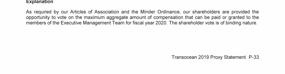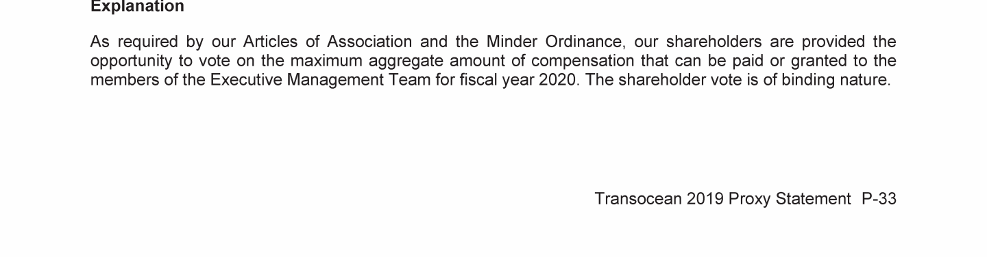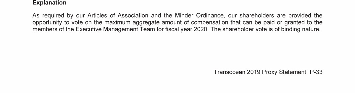 Agenda Item 1. Approval of the 2018 Annual Report, Including the Audited Consolidated Financial Statements of Transocean Ltd. for Fiscal Year 2018 and the Audited Statutory Financial Statements of Transocean Ltd. for Fiscal Year 2018