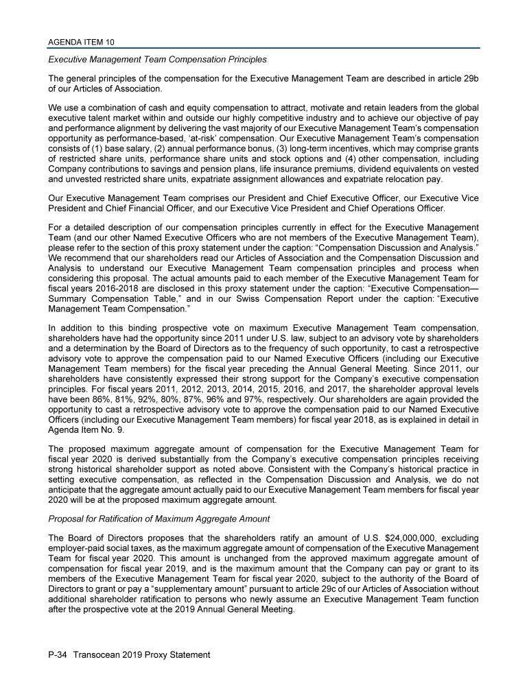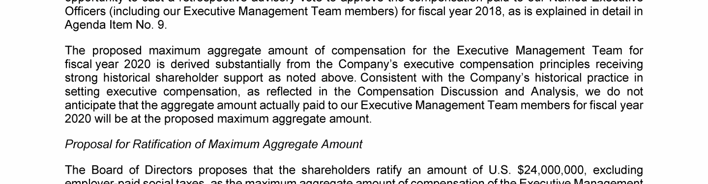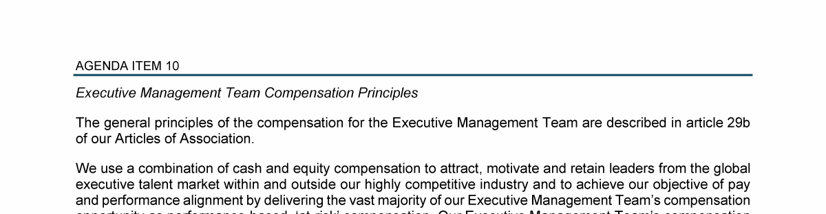 Agenda Item 10. Prospective Votes on the Maximum Compensation of the Board of Directors and the Executive Management Team