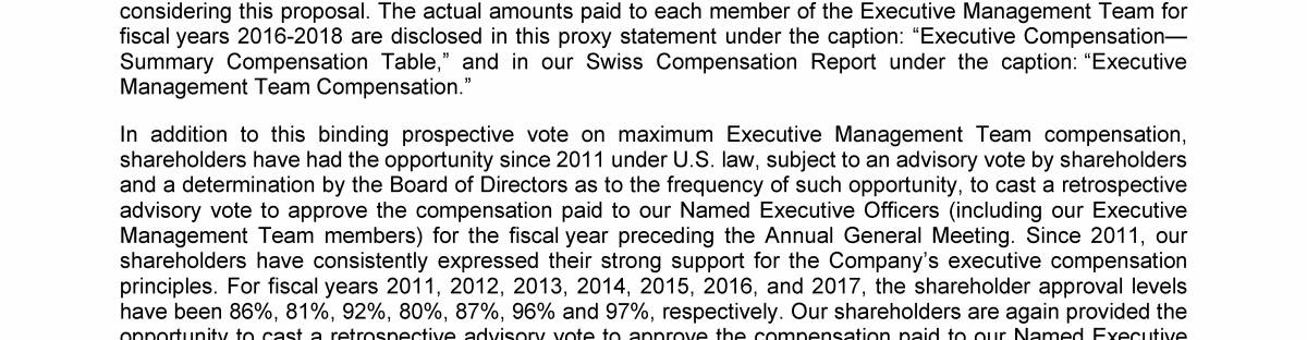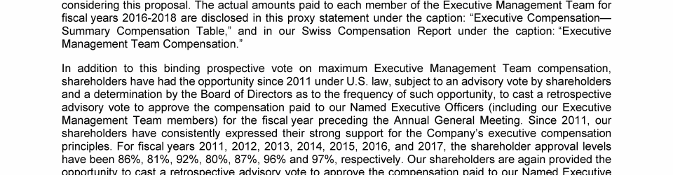 Agenda Item 8. Appointment of Ernst & Young LLP as the Company's Independent Registered Public Accounting Firm for Fiscal Year 2019 and Reelection of Ernst & Young Ltd, Zurich, as the Company's Auditor for a Further One-Year Term