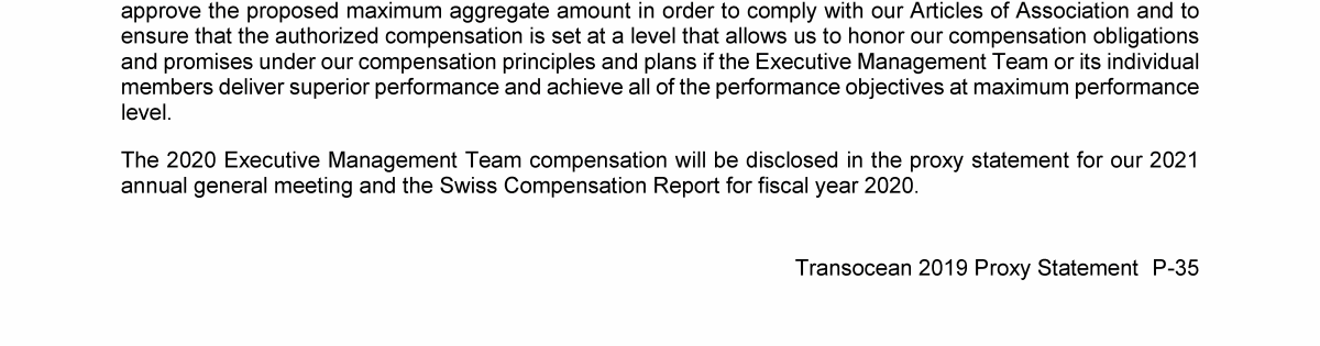 Agenda Item 1. Approval of the 2018 Annual Report, Including the Audited Consolidated Financial Statements of Transocean Ltd. for Fiscal Year 2018 and the Audited Statutory Financial Statements of Transocean Ltd. for Fiscal Year 2018