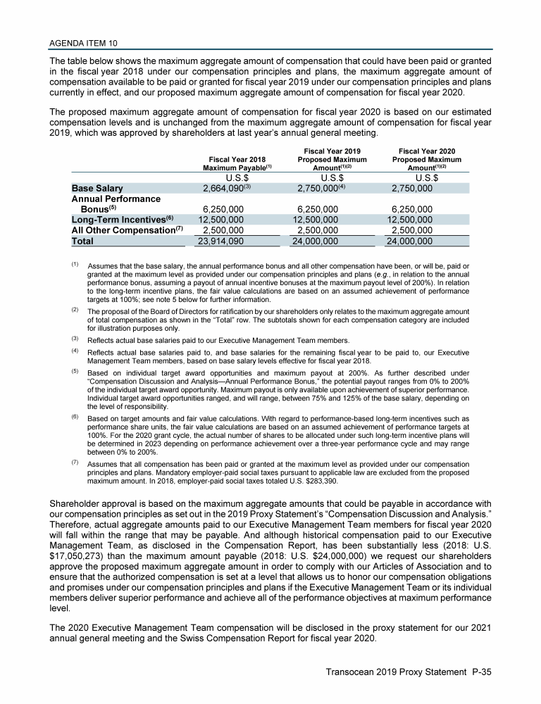 Agenda Item 10. Prospective Votes on the Maximum Compensation of the Board of Directors and the Executive Management Team