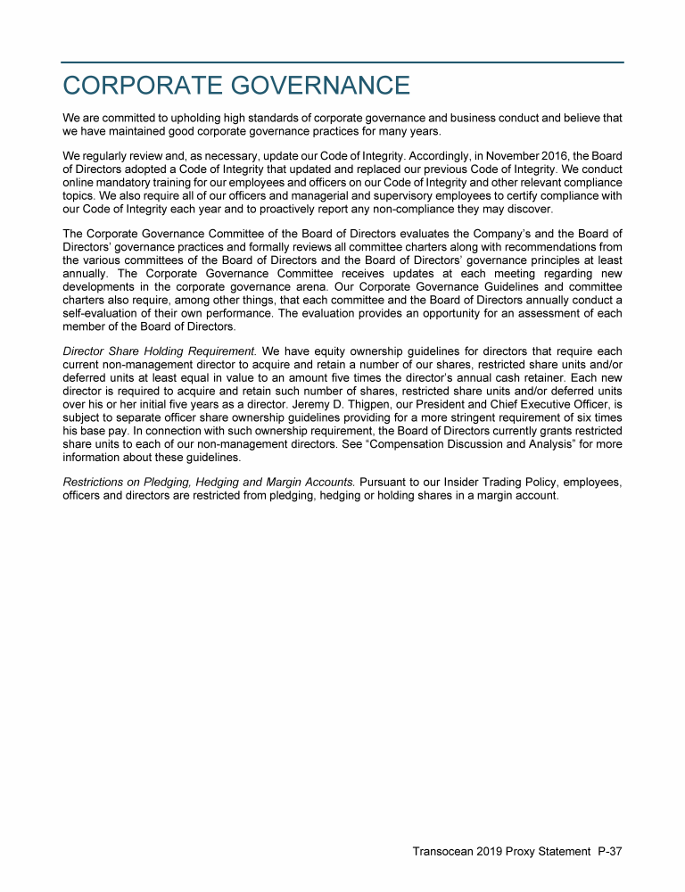 Invitation to 2019 Annual General Meeting of Transocean Ltd.