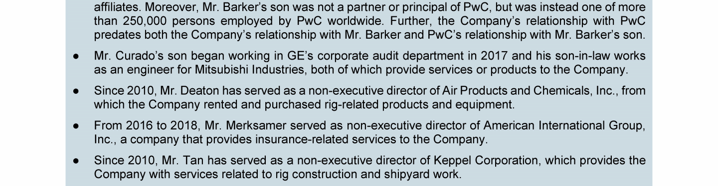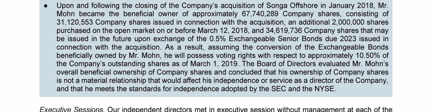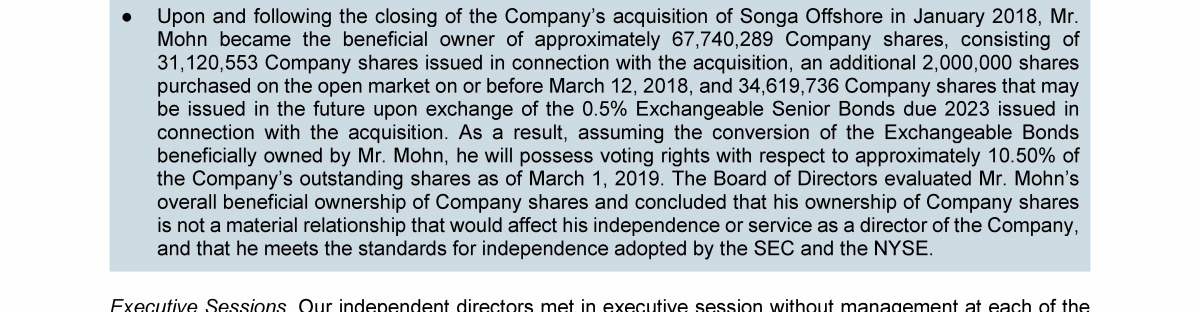 Agenda Item 1. Approval of the 2018 Annual Report, Including the Audited Consolidated Financial Statements of Transocean Ltd. for Fiscal Year 2018 and the Audited Statutory Financial Statements of Transocean Ltd. for Fiscal Year 2018