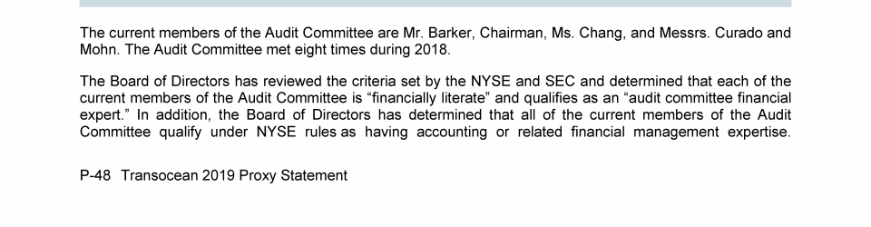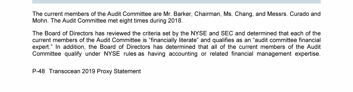 Agenda Item 1. Approval of the 2018 Annual Report, Including the Audited Consolidated Financial Statements of Transocean Ltd. for Fiscal Year 2018 and the Audited Statutory Financial Statements of Transocean Ltd. for Fiscal Year 2018