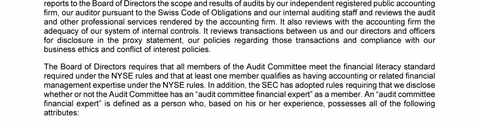 Agenda Item 8. Appointment of Ernst & Young LLP as the Company's Independent Registered Public Accounting Firm for Fiscal Year 2019 and Reelection of Ernst & Young Ltd, Zurich, as the Company's Auditor for a Further One-Year Term