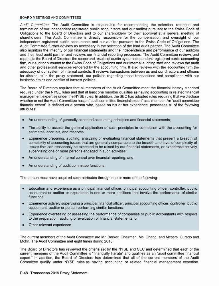 Invitation to 2019 Annual General Meeting of Transocean Ltd.