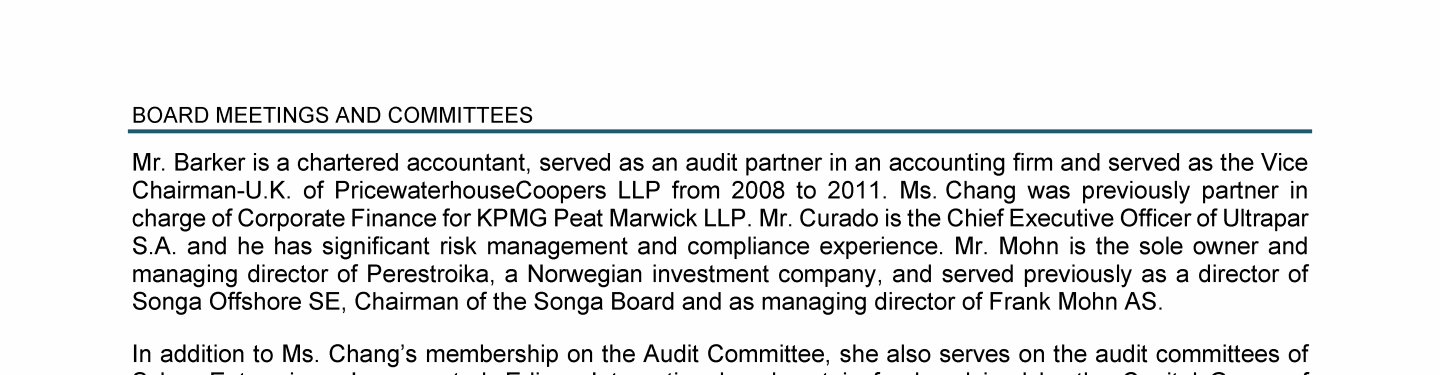 Agenda Item 1. Approval of the 2018 Annual Report, Including the Audited Consolidated Financial Statements of Transocean Ltd. for Fiscal Year 2018 and the Audited Statutory Financial Statements of Transocean Ltd. for Fiscal Year 2018
