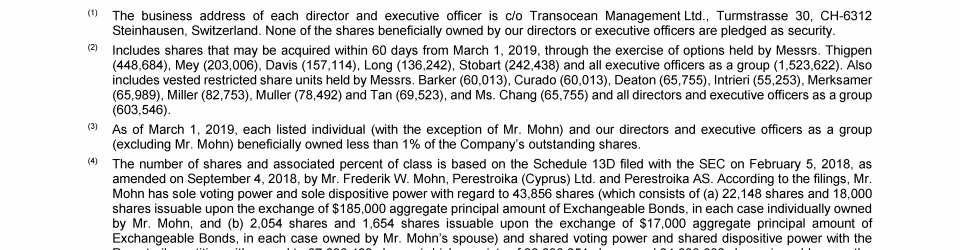 Invitation to 2019 Annual General Meeting of Transocean Ltd.