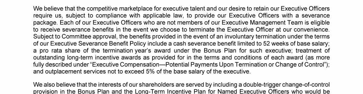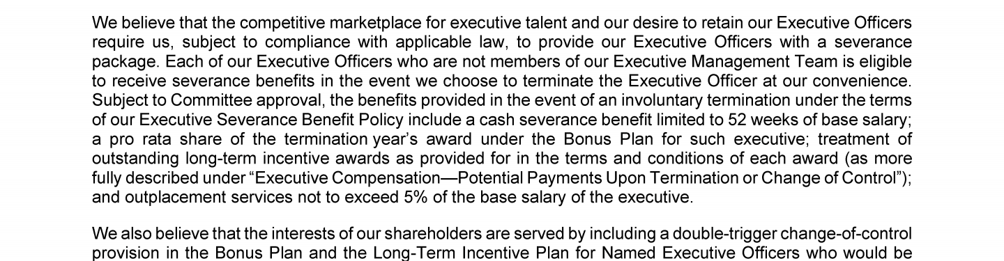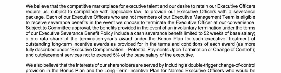 - Potential Payments Upon Termination or Change of Control