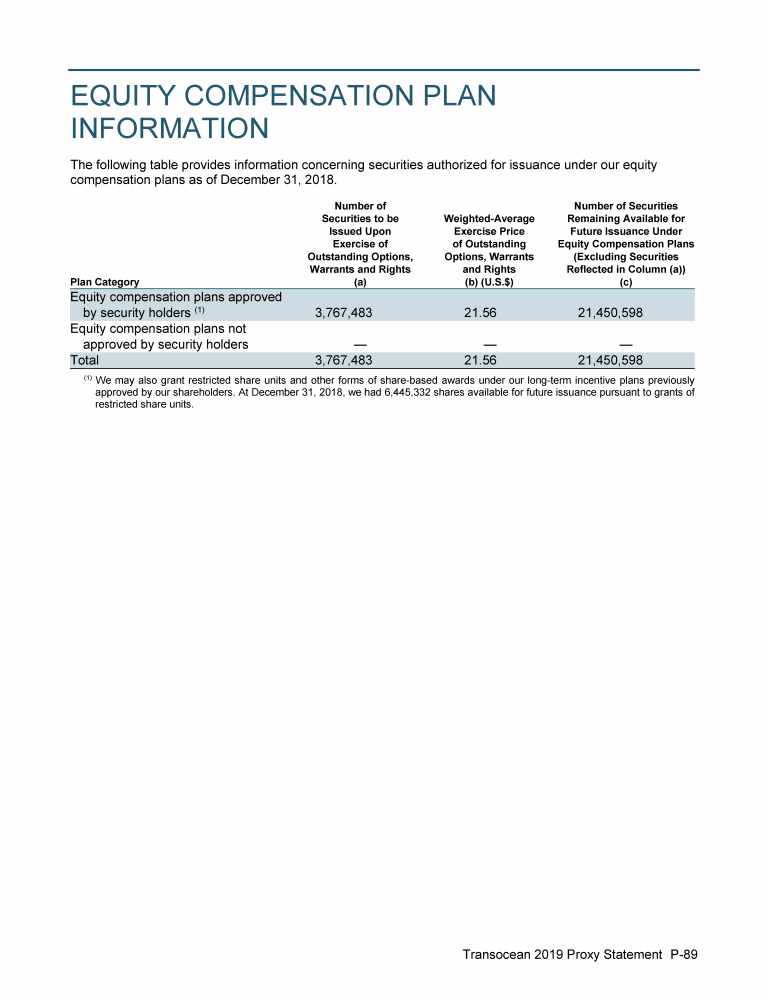 Invitation to 2019 Annual General Meeting of Transocean Ltd.