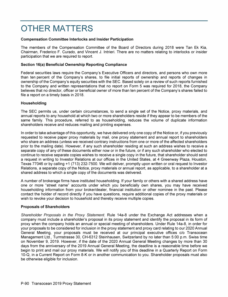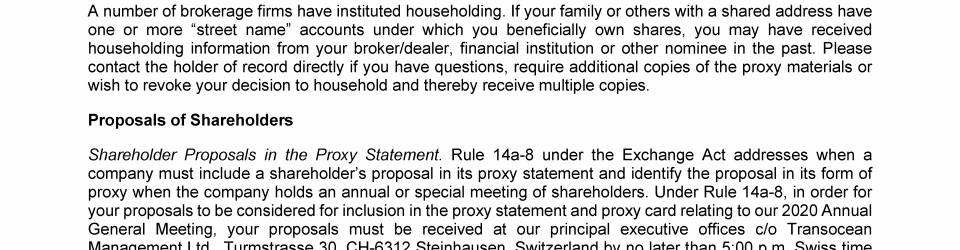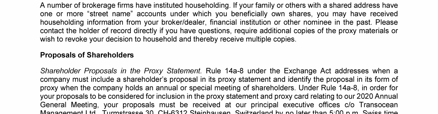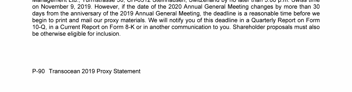 Invitation to 2019 Annual General Meeting of Transocean Ltd.