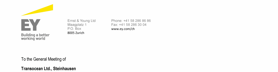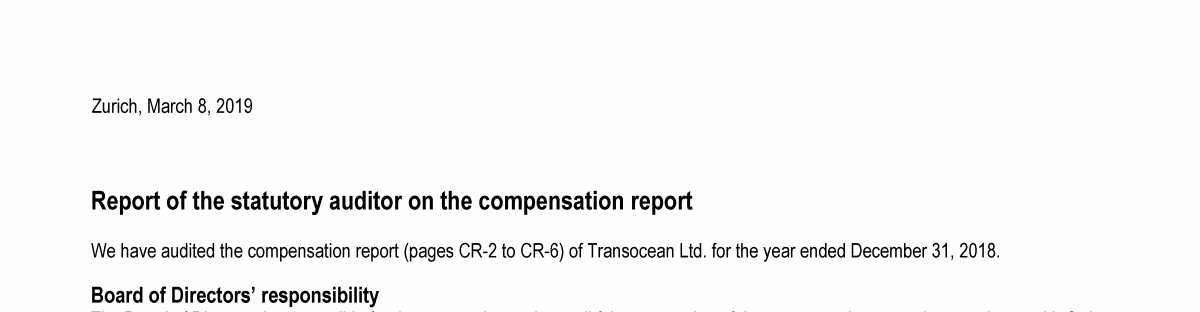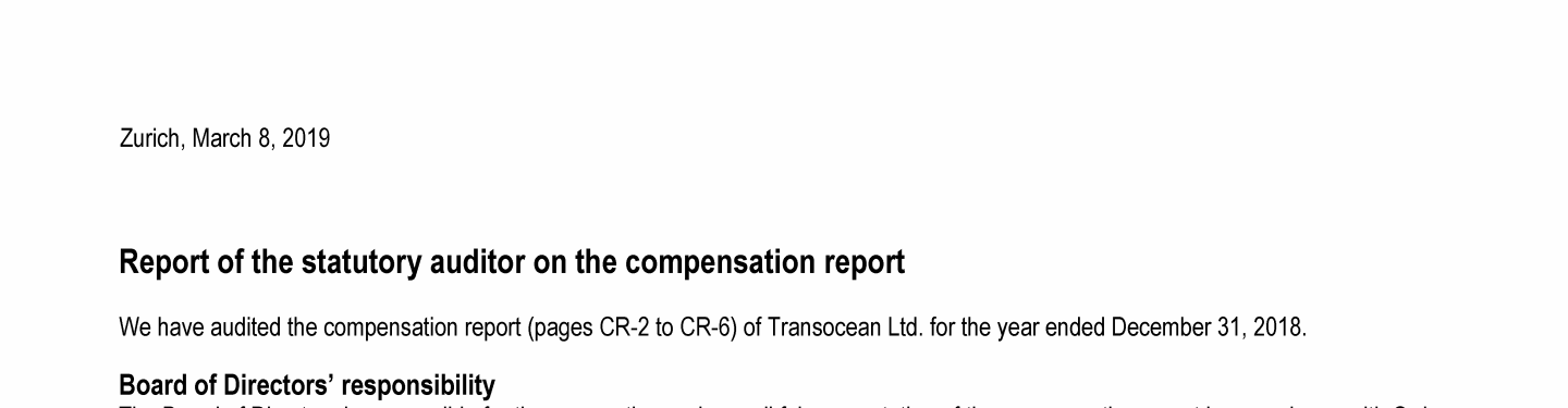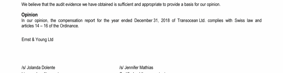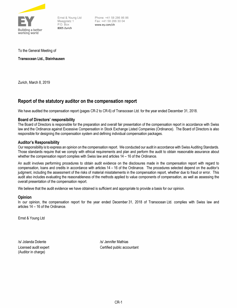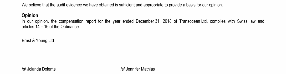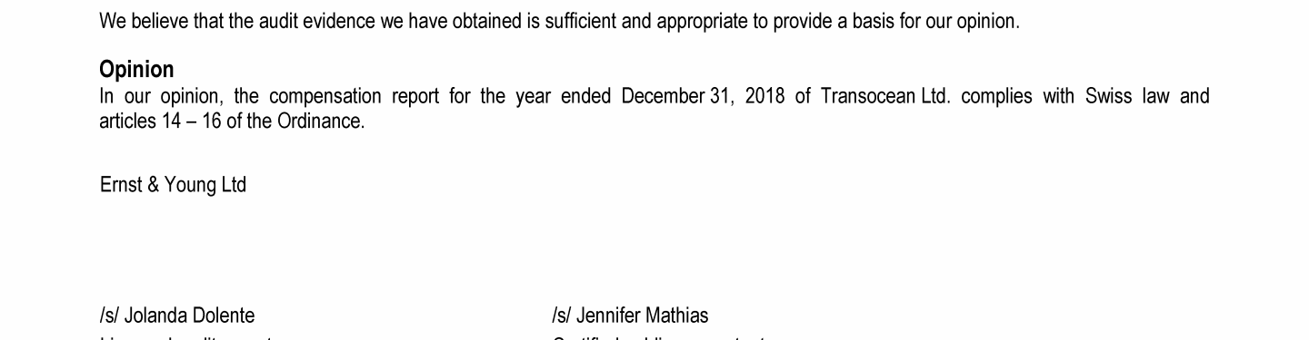 Agenda Item 1. Approval of the 2018 Annual Report, Including the Audited Consolidated Financial Statements of Transocean Ltd. for Fiscal Year 2018 and the Audited Statutory Financial Statements of Transocean Ltd. for Fiscal Year 2018