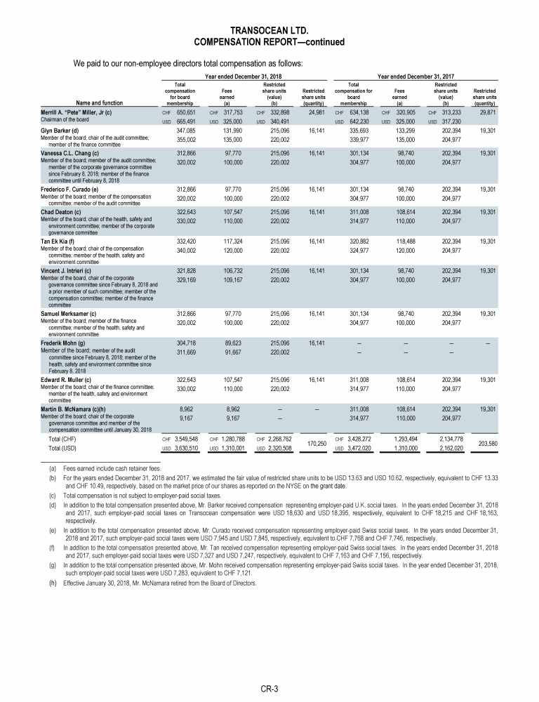 Agenda Item 1. Approval of the 2018 Annual Report, Including the Audited Consolidated Financial Statements of Transocean Ltd. for Fiscal Year 2018 and the Audited Statutory Financial Statements of Transocean Ltd. for Fiscal Year 2018