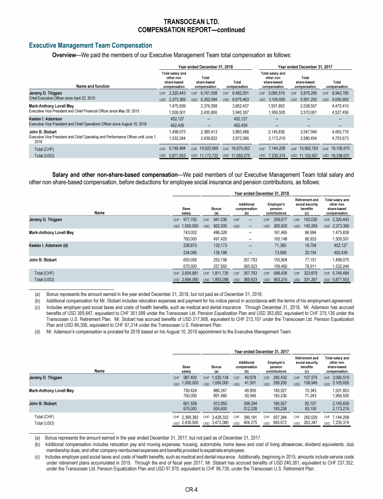 Agenda Item 1. Approval of the 2018 Annual Report, Including the Audited Consolidated Financial Statements of Transocean Ltd. for Fiscal Year 2018 and the Audited Statutory Financial Statements of Transocean Ltd. for Fiscal Year 2018