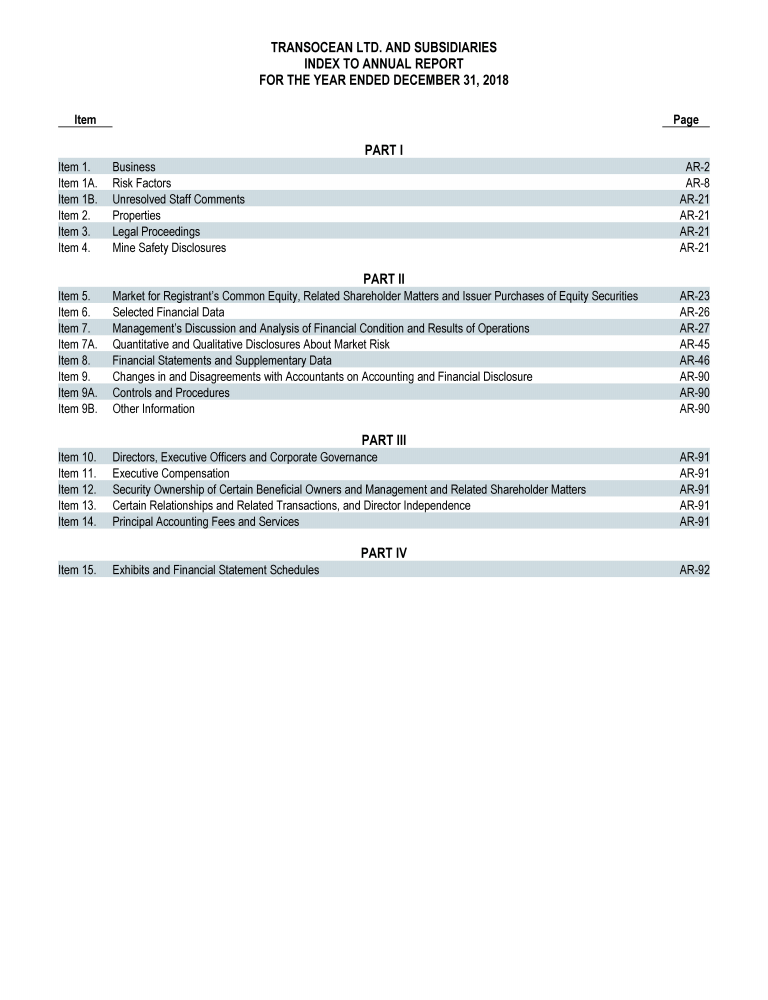 Agenda Item 1. Approval of the 2018 Annual Report, Including the Audited Consolidated Financial Statements of Transocean Ltd. for Fiscal Year 2018 and the Audited Statutory Financial Statements of Transocean Ltd. for Fiscal Year 2018