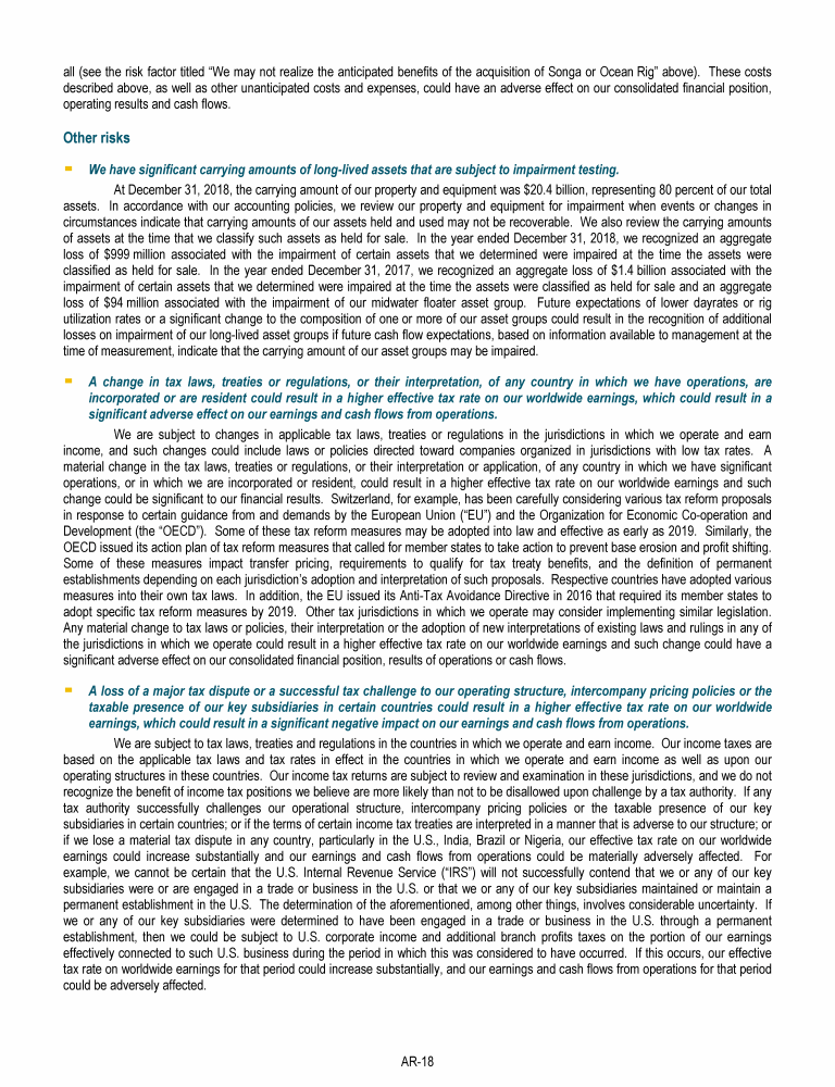 Agenda Item 1. Approval of the 2018 Annual Report, Including the Audited Consolidated Financial Statements of Transocean Ltd. for Fiscal Year 2018 and the Audited Statutory Financial Statements of Transocean Ltd. for Fiscal Year 2018