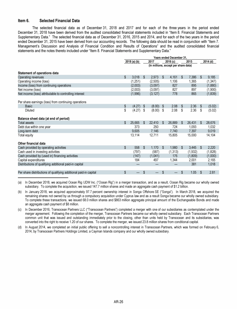 Agenda Item 1. Approval of the 2018 Annual Report, Including the Audited Consolidated Financial Statements of Transocean Ltd. for Fiscal Year 2018 and the Audited Statutory Financial Statements of Transocean Ltd. for Fiscal Year 2018