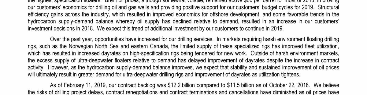 Agenda Item 1. Approval of the 2018 Annual Report, Including the Audited Consolidated Financial Statements of Transocean Ltd. for Fiscal Year 2018 and the Audited Statutory Financial Statements of Transocean Ltd. for Fiscal Year 2018