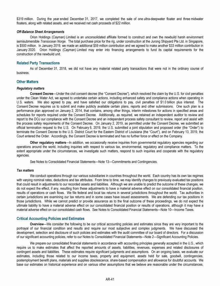 Agenda Item 1. Approval of the 2018 Annual Report, Including the Audited Consolidated Financial Statements of Transocean Ltd. for Fiscal Year 2018 and the Audited Statutory Financial Statements of Transocean Ltd. for Fiscal Year 2018