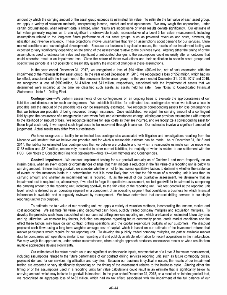 Agenda Item 1. Approval of the 2018 Annual Report, Including the Audited Consolidated Financial Statements of Transocean Ltd. for Fiscal Year 2018 and the Audited Statutory Financial Statements of Transocean Ltd. for Fiscal Year 2018