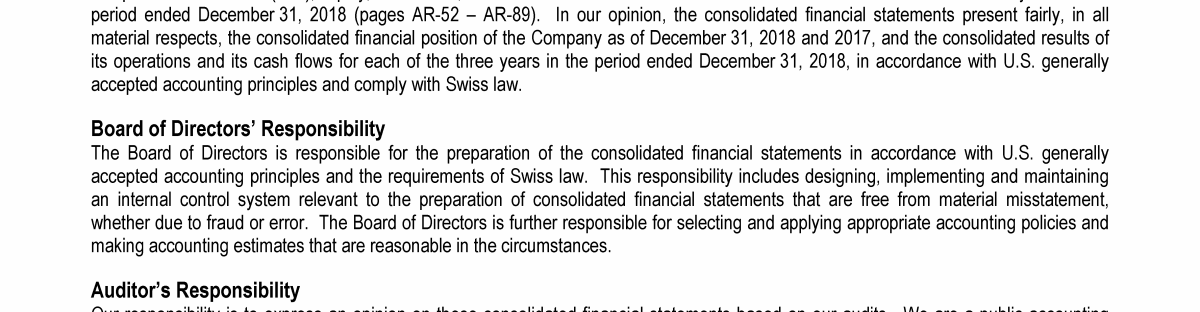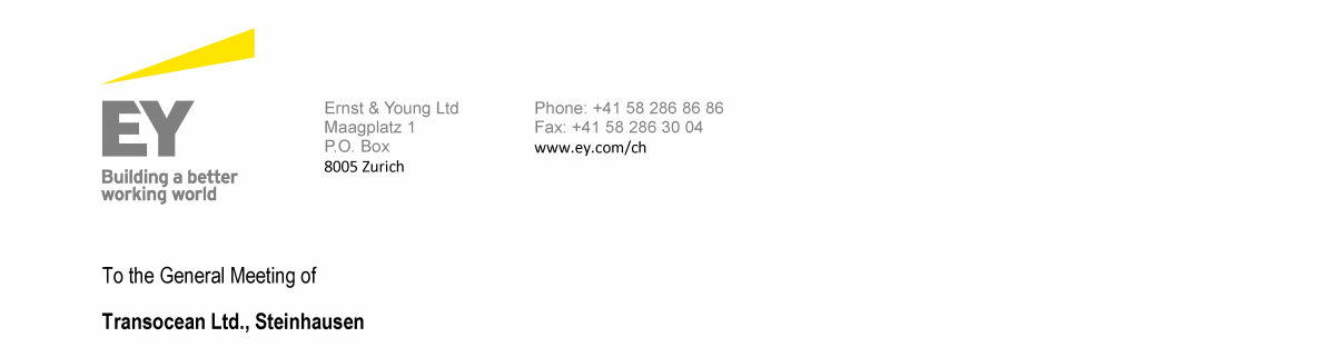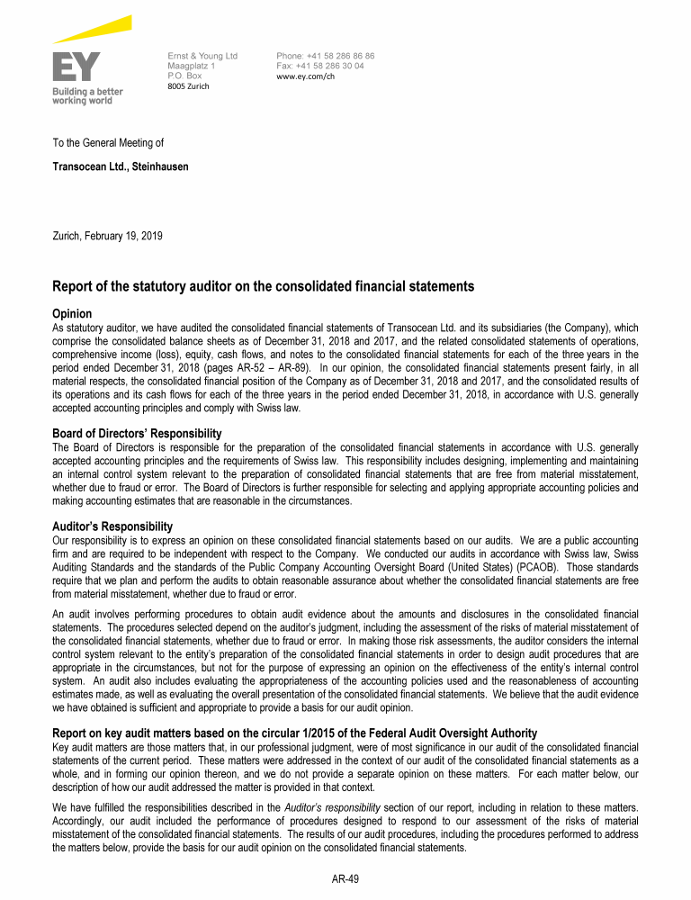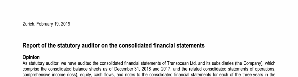 Agenda Item 1. Approval of the 2018 Annual Report, Including the Audited Consolidated Financial Statements of Transocean Ltd. for Fiscal Year 2018 and the Audited Statutory Financial Statements of Transocean Ltd. for Fiscal Year 2018