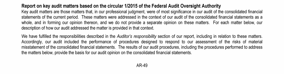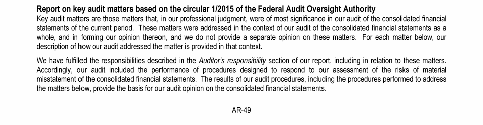 Report of the Statutory Auditor on the Financial Statements