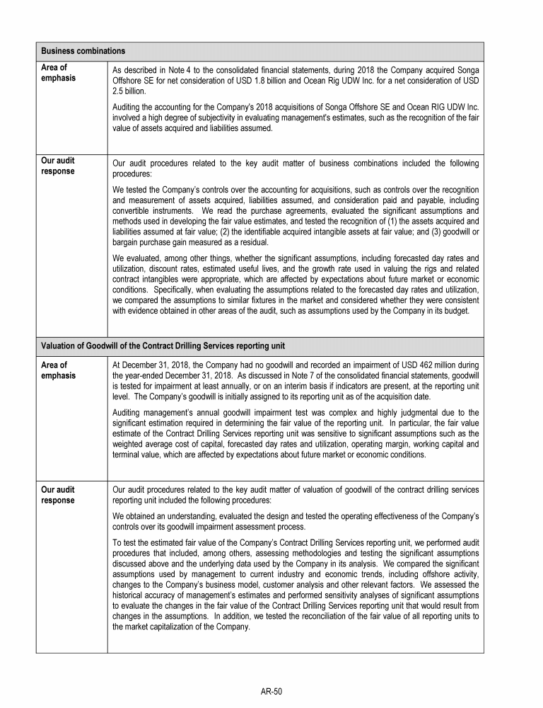 Agenda Item 1. Approval of the 2018 Annual Report, Including the Audited Consolidated Financial Statements of Transocean Ltd. for Fiscal Year 2018 and the Audited Statutory Financial Statements of Transocean Ltd. for Fiscal Year 2018