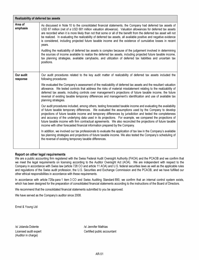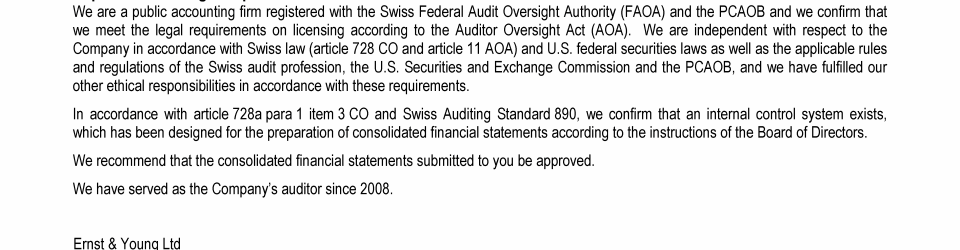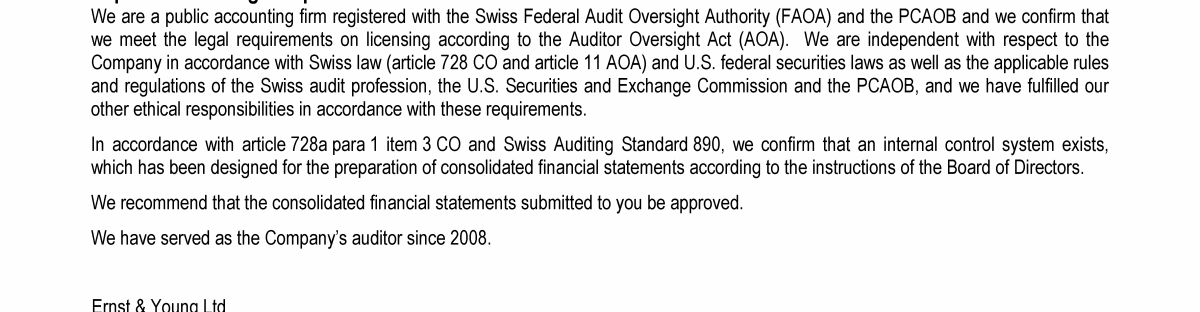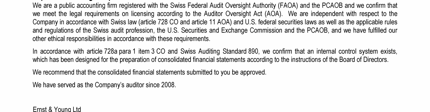 Agenda Item 8. Appointment of Ernst & Young LLP as the Company's Independent Registered Public Accounting Firm for Fiscal Year 2019 and Reelection of Ernst & Young Ltd, Zurich, as the Company's Auditor for a Further One-Year Term