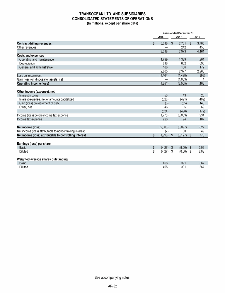 Agenda Item 1. Approval of the 2018 Annual Report, Including the Audited Consolidated Financial Statements of Transocean Ltd. for Fiscal Year 2018 and the Audited Statutory Financial Statements of Transocean Ltd. for Fiscal Year 2018